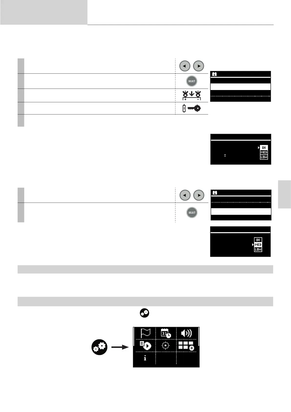 Het menu instellingen is toegankelijk met een druk op de knop .