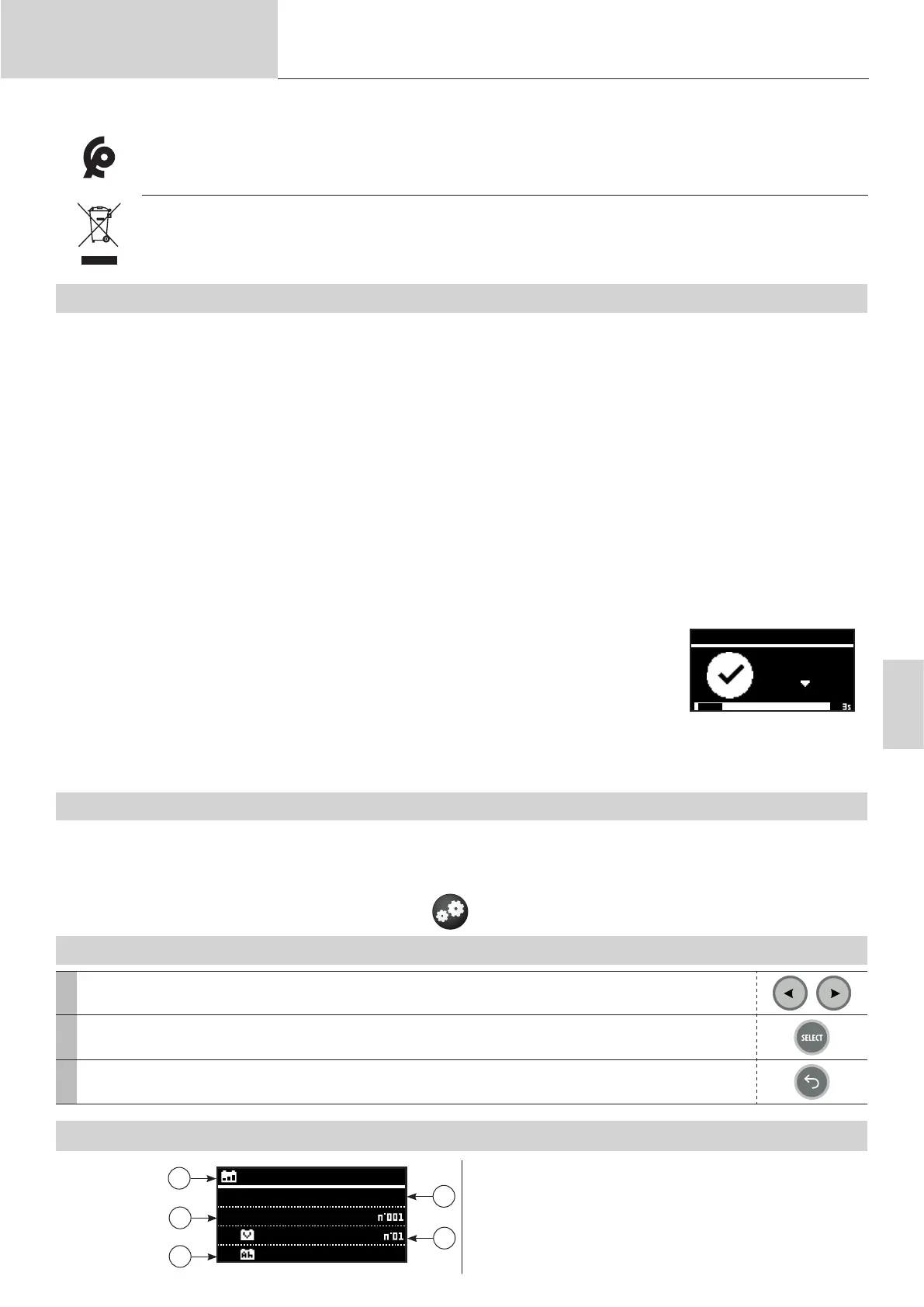 1 Utilizzare le frecce per spostarsi nel menu o per modicare il valore o lo stato di un parametro.