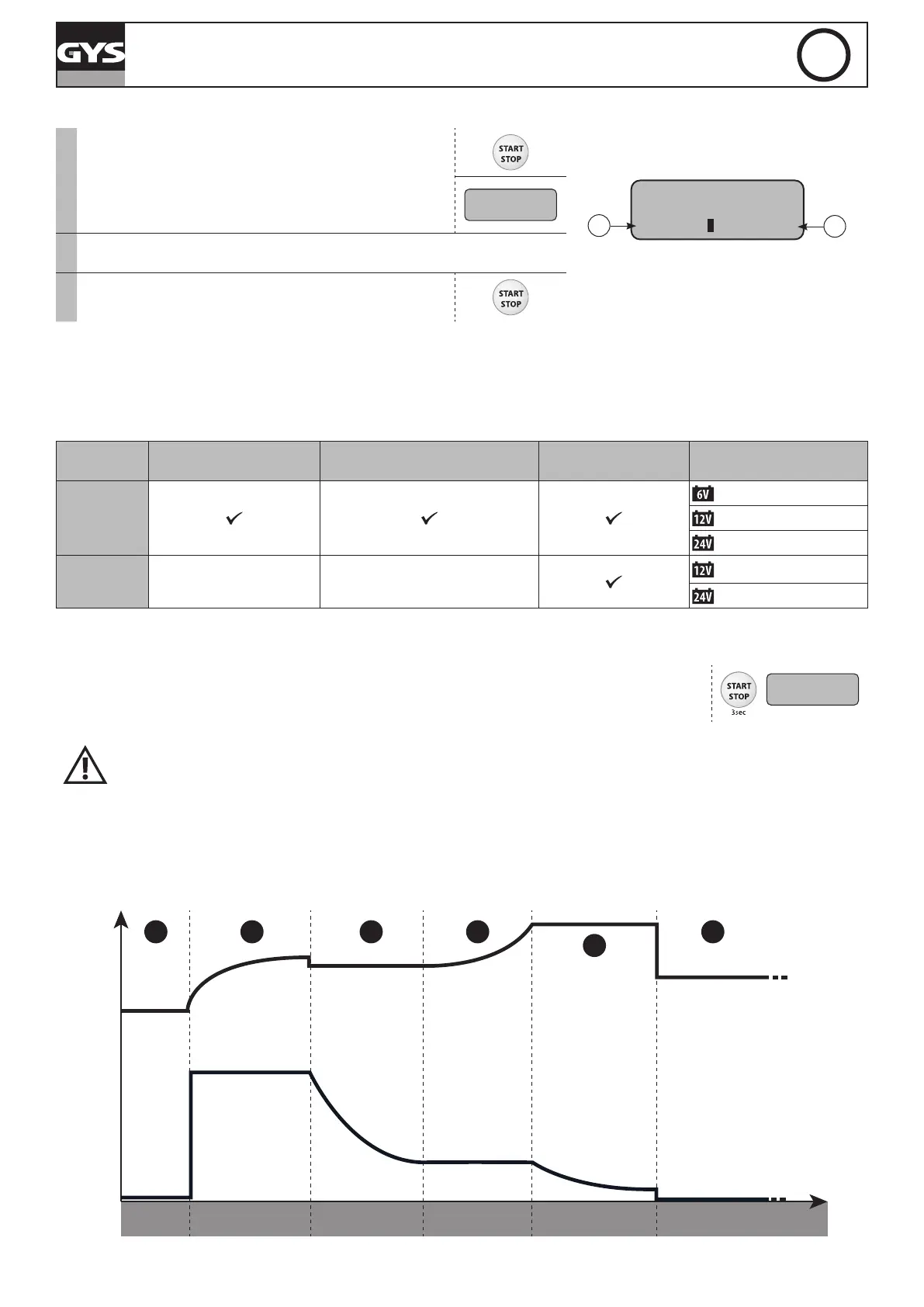 Beträgt der Strom beim Starten des Modus über 10A, ist die Batterie entladen. Das GYSFLASH lädt dann zuerst die Batterie auf.