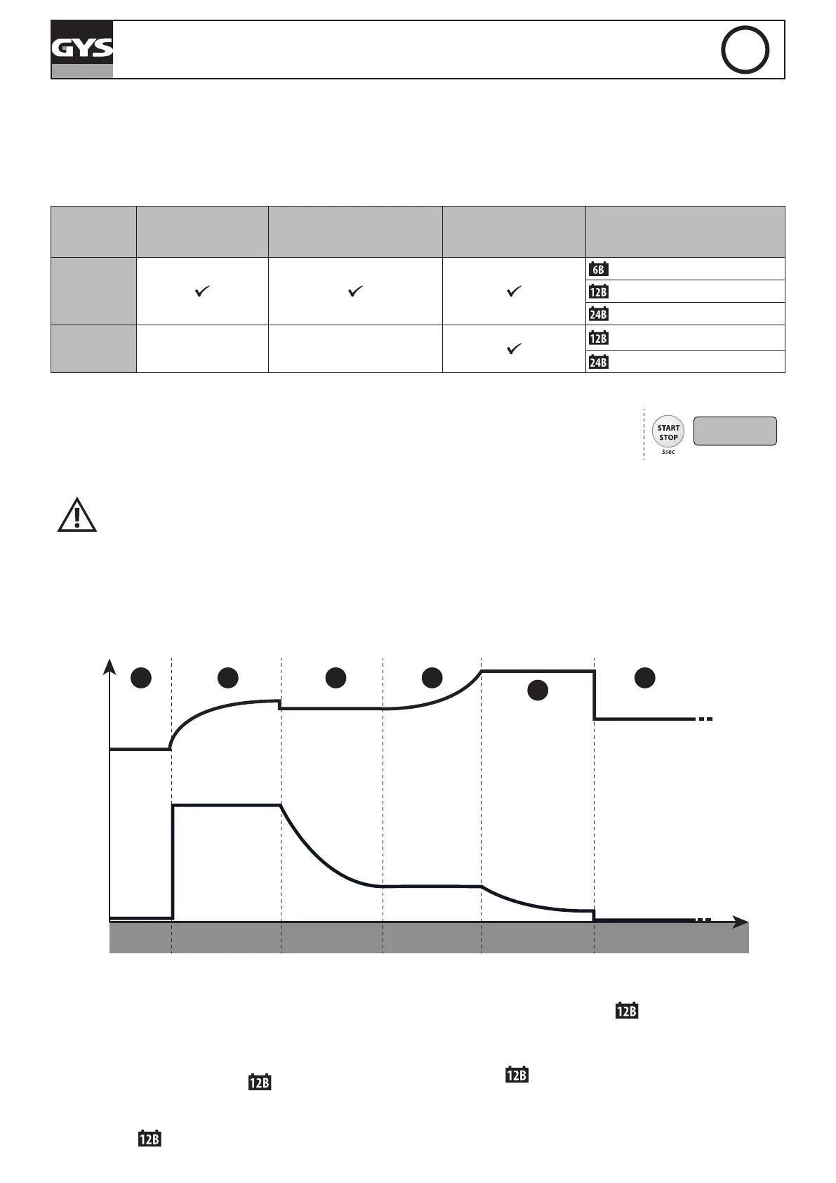 случае GYSFLASH начнет генерировать ток зарядки. Проверьте, что потребители автомобиля отключены. Дождитесь, когда