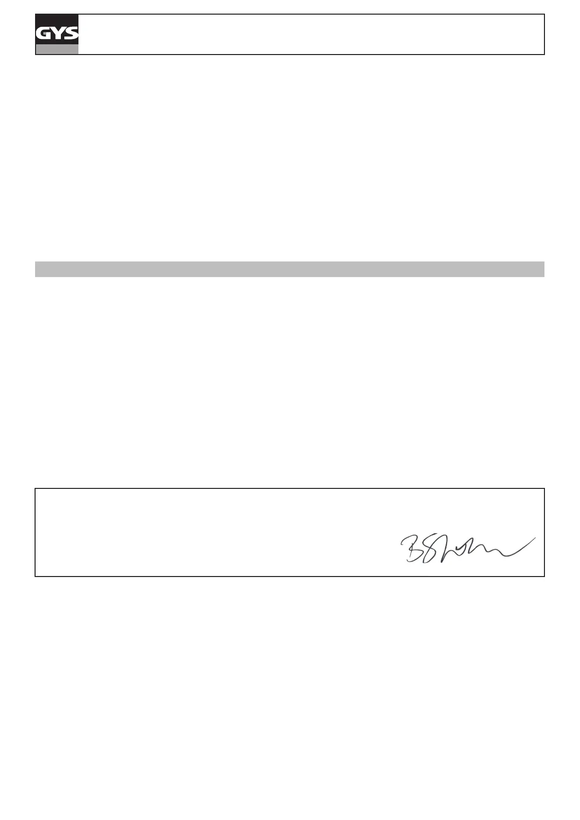 GYS SAS bescheinigt in eigener Verantwortung, dass das neue Produkt gemäß GYSFLASH CNT, für das diese Erklärung gilt, gemäß