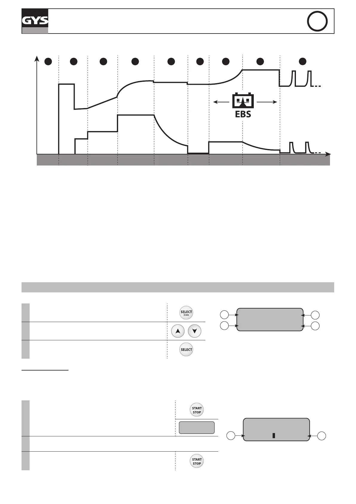 During the mode, your GYSFLASH indicates the battery voltage and the cur-