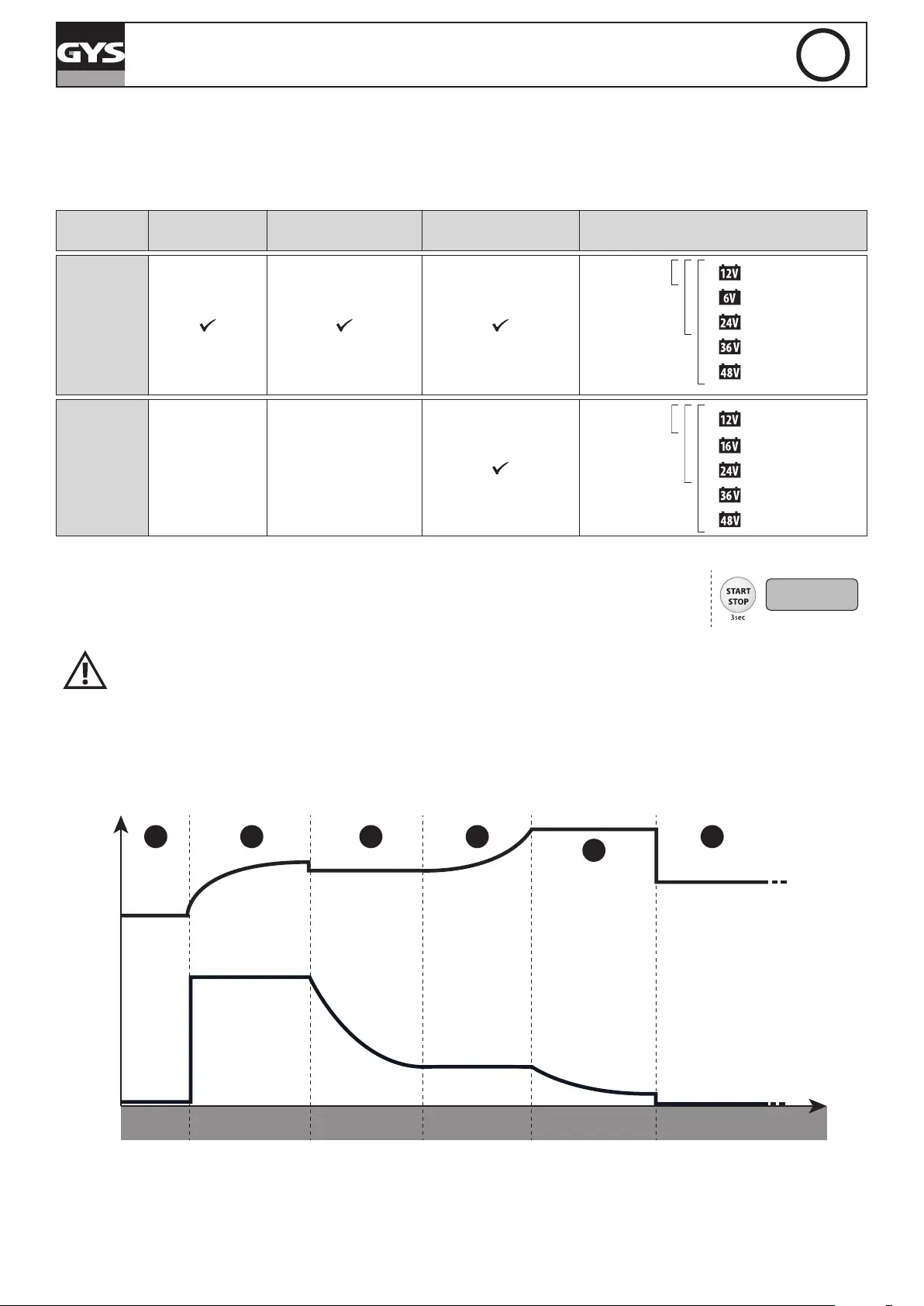 Beträgt der Strom beim Starten des Modus über 10A, ist die Batterie entladen. Das GYSFLASH lädt dann zuerst die Batterie auf.