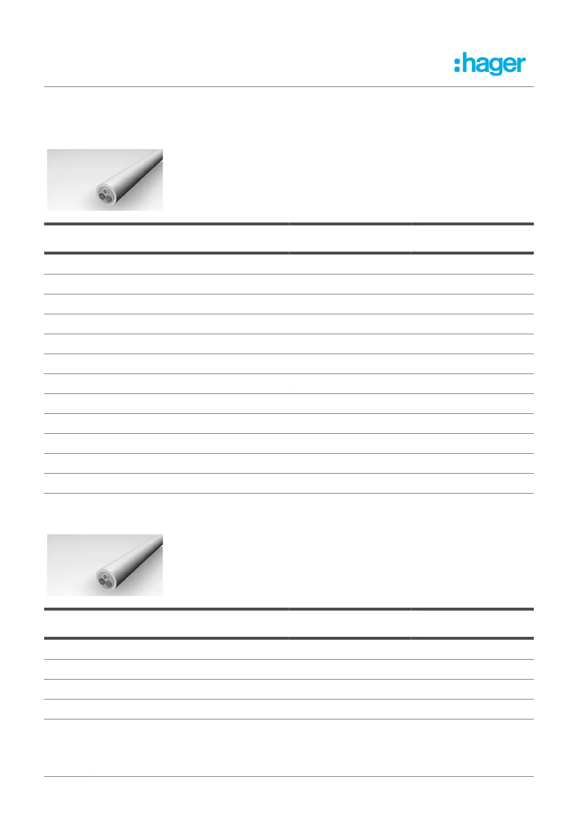Table 2: Cable volume, jacketed cable, rigid