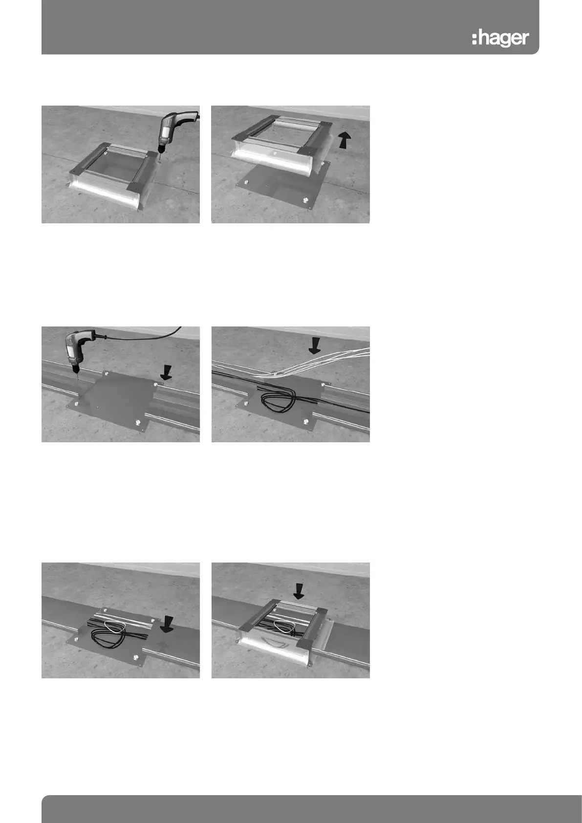 Secure the universal junction box to the slab. Pull the upper part from the universal junc-