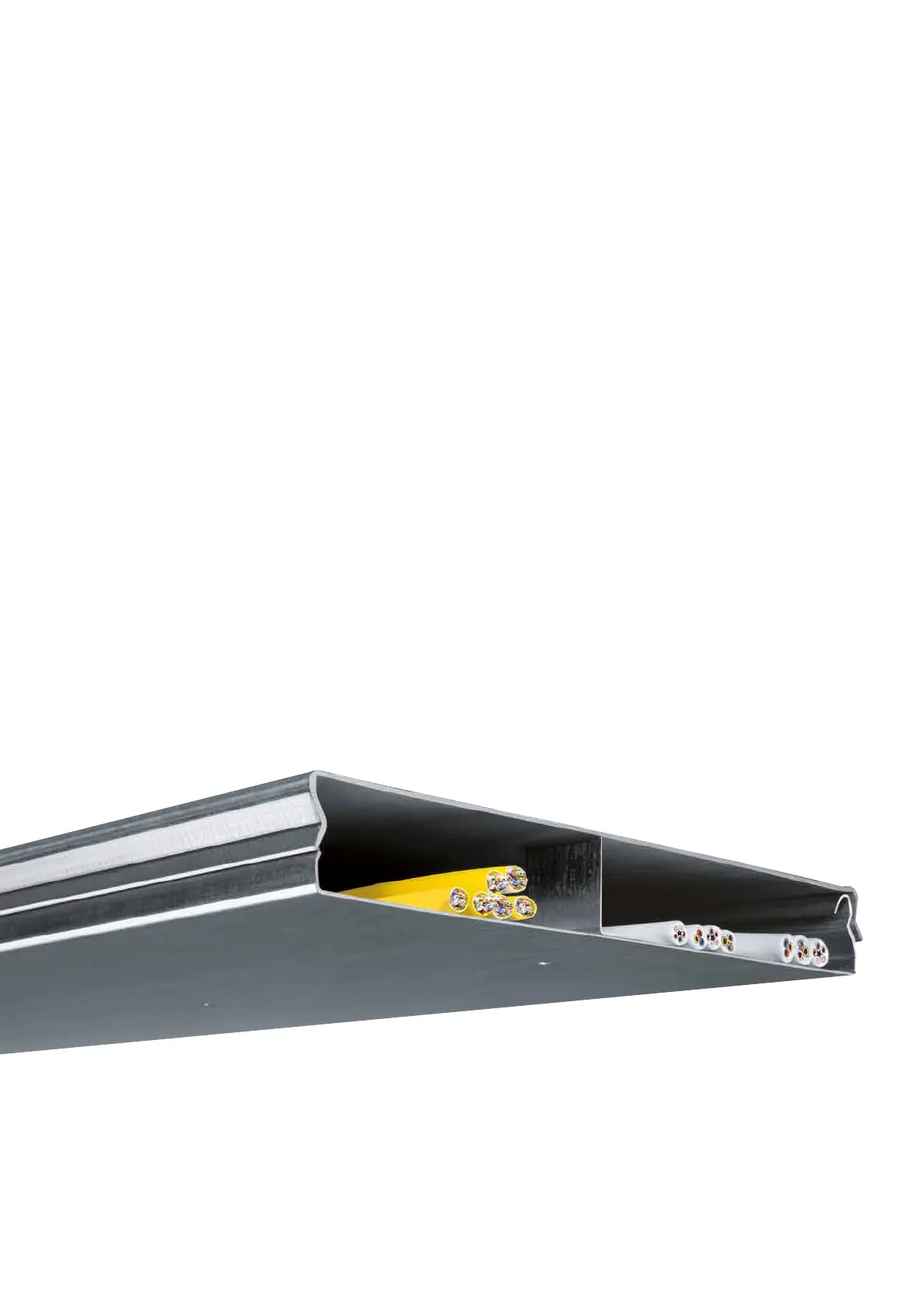 the snapped-on trunking covers can easily be taken off before the screed is poured to allow simple