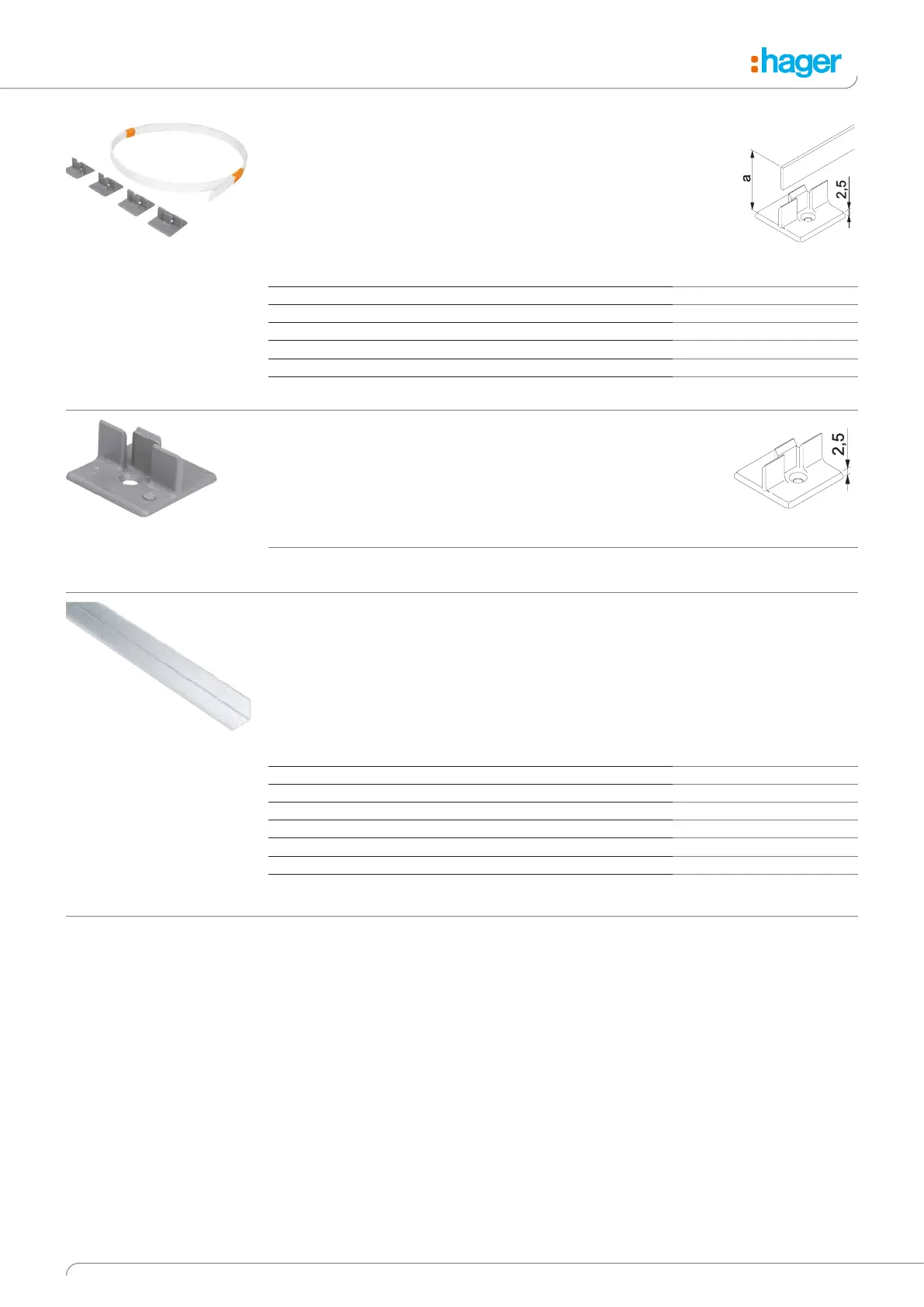 - Total height with partition wall feet = nominal height a + 2.5 mm