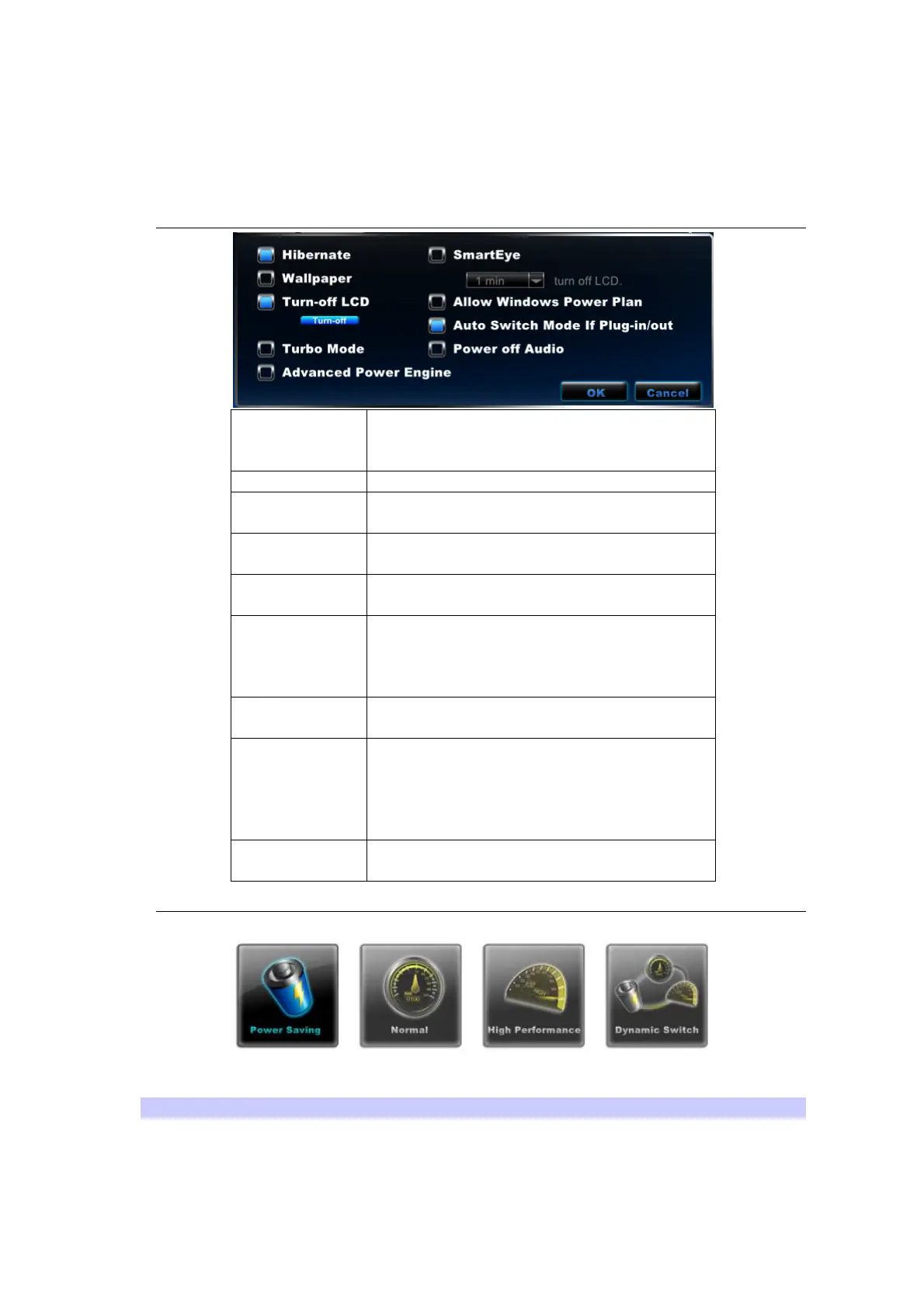 按下快速键可在电源管理模式之间做切换,并在屏幕上显示。