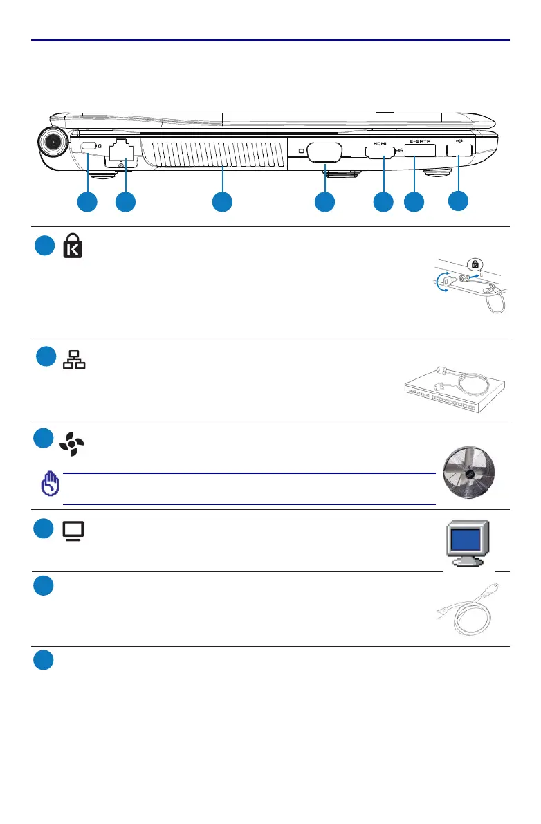 请参考下面的图示来识别笔记本电脑左侧的组件。