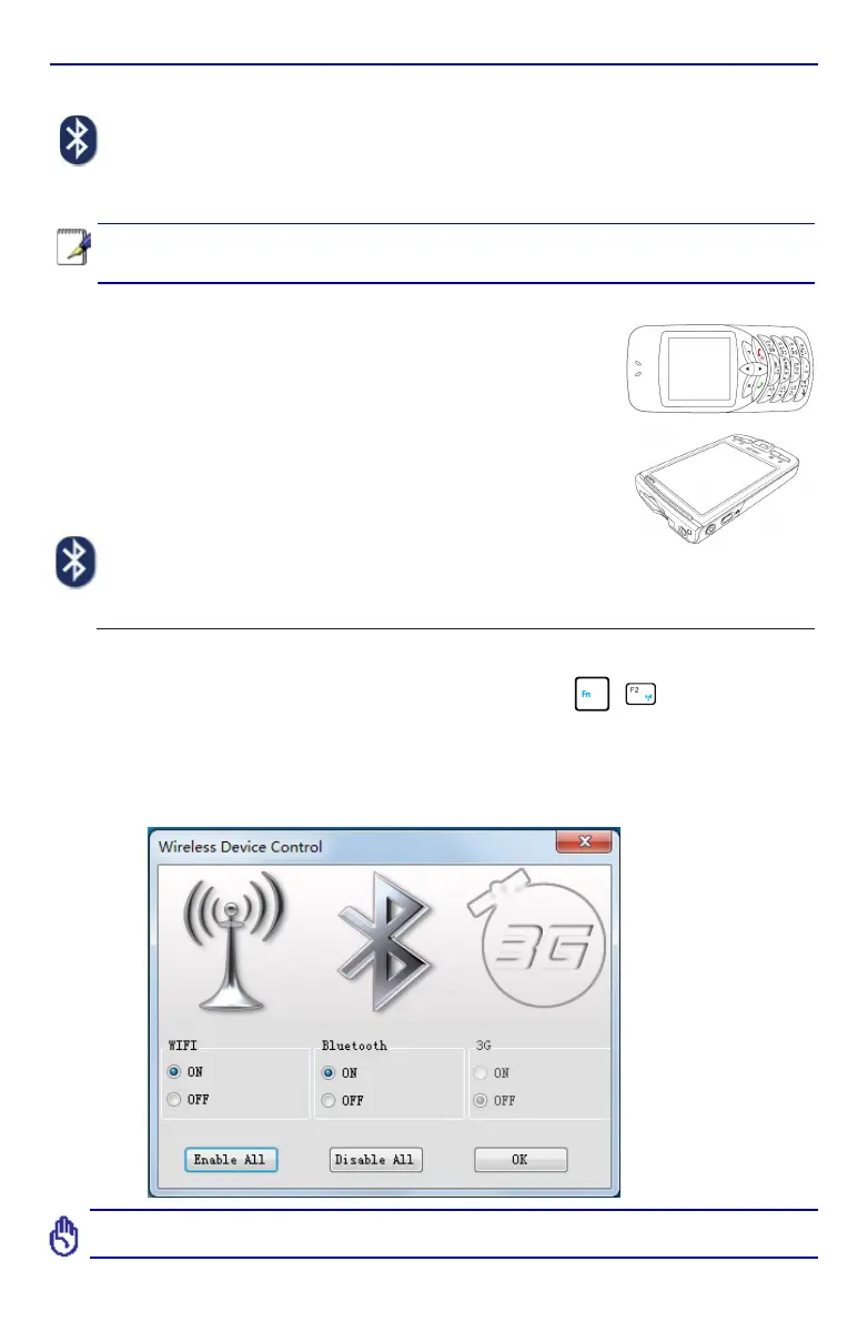 2.直到屏幕出现“Wireless Device Control”界面,选择“BT ON”或“Enable All”.