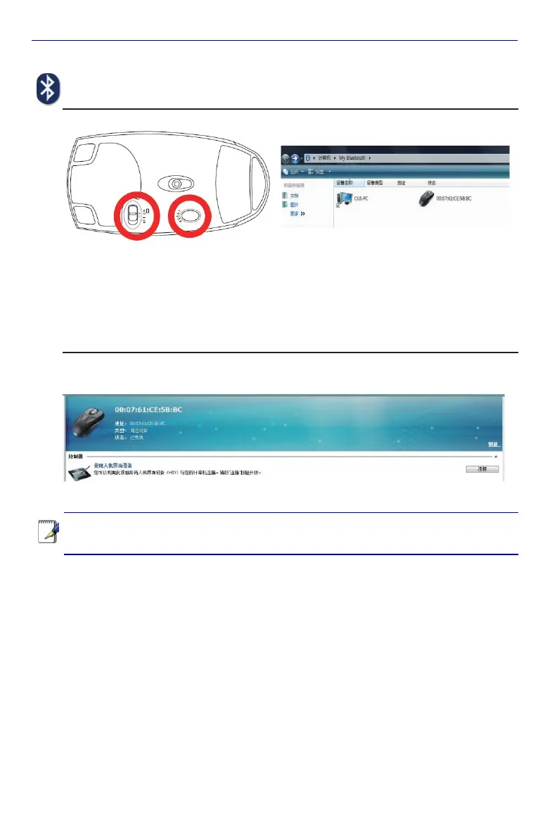 注意:蓝牙鼠标等置时间过长或更换电池后蓝牙鼠标可能需要复位