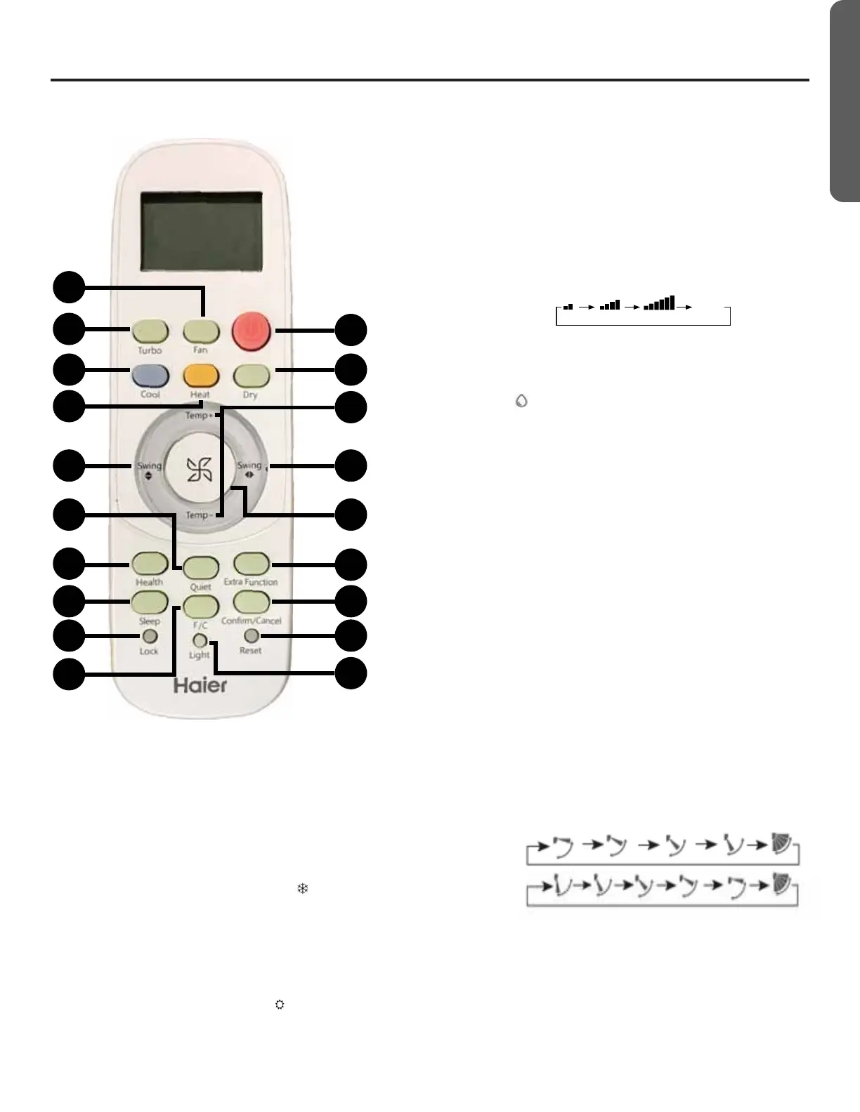 fan speed from low, medium to high. Auto, Turbo and Quiet