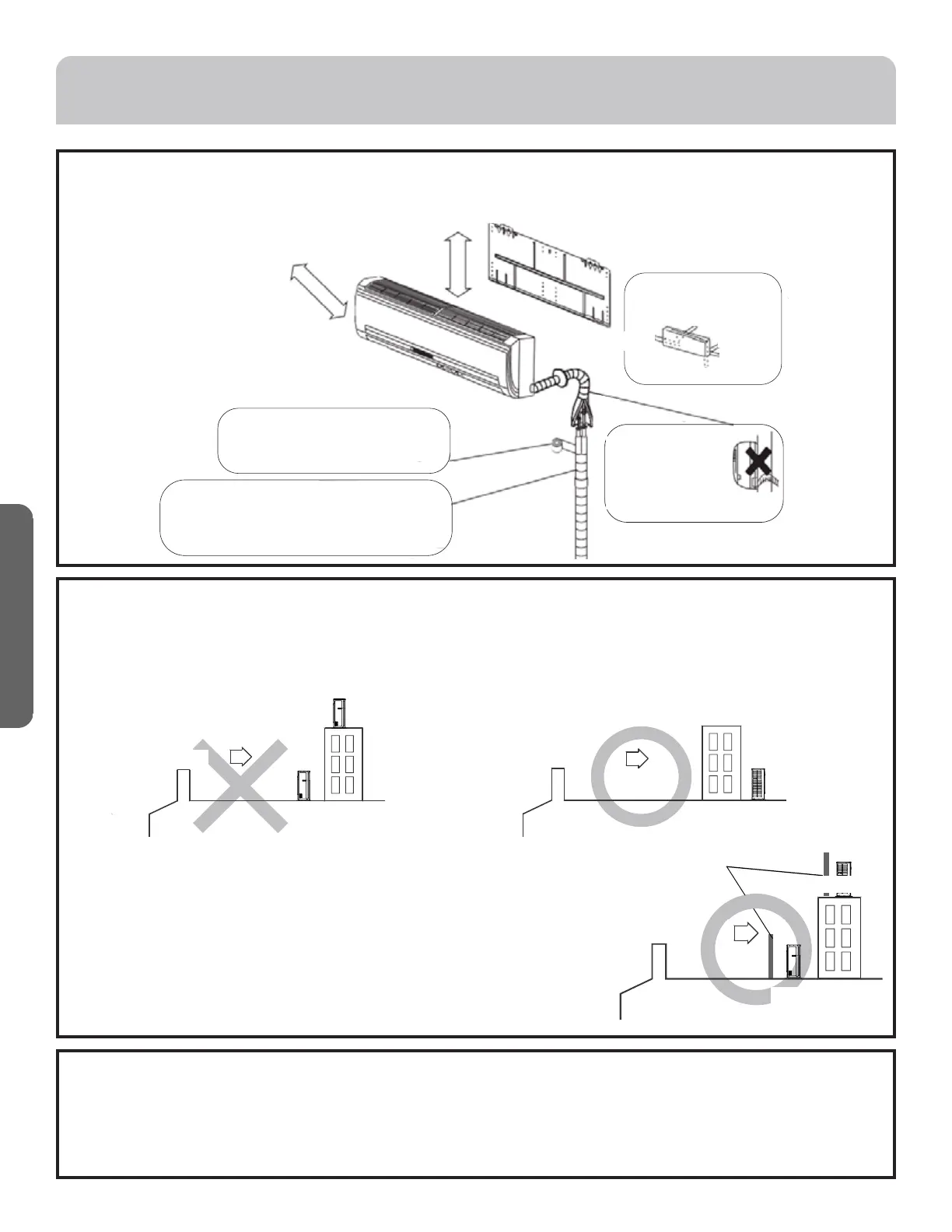 • L’unité extérieure doit être installée à un minimum de 1/2 mille (0,8 km) d’un plan d’eau salée telle que bord de mer et voies