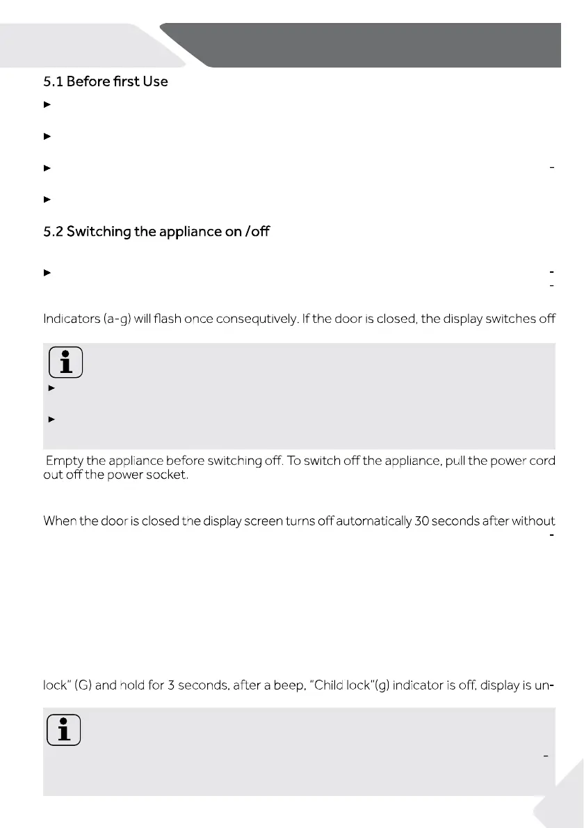 “Child lock”(g) indicator is light, display is locked. When the display is locked, press “Child