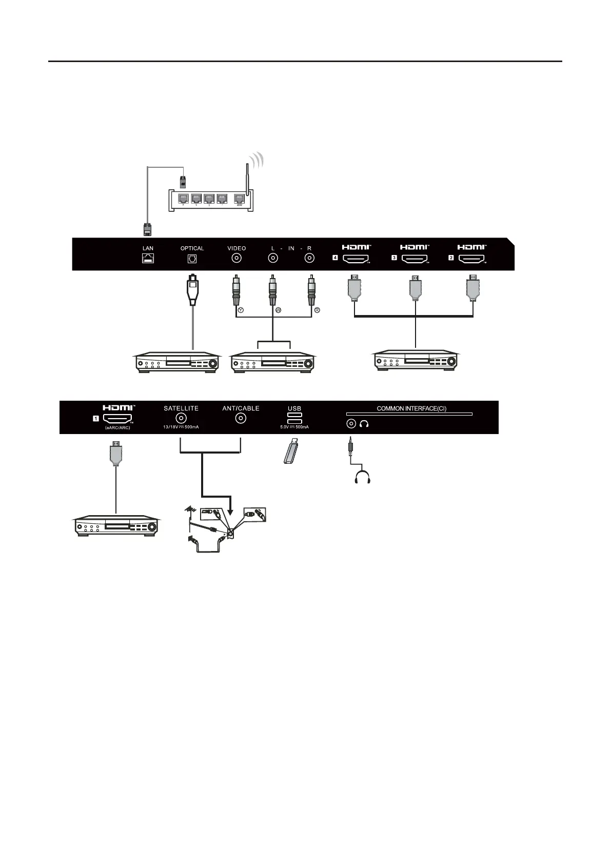 Det kan forbindes til følgende enheder: VCR, multidiskafspiller, DVD, camcorder, videospil, stereosystem osv...