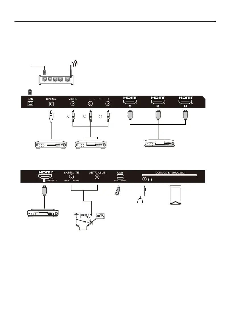 Puede utilizar los terminales de entrada de la parte trasera del televisor como se indica a continuación.