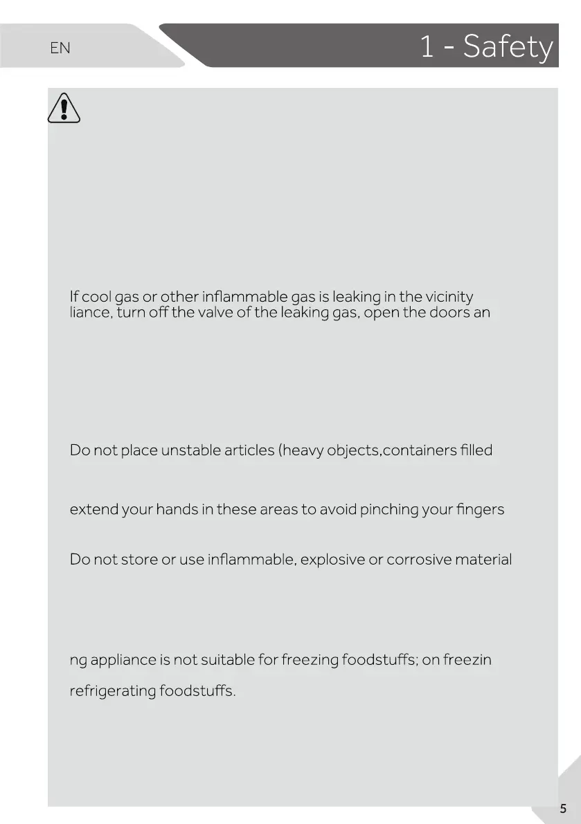with wa-ter) on top of the freezer, to ovoid personal injury caused by
