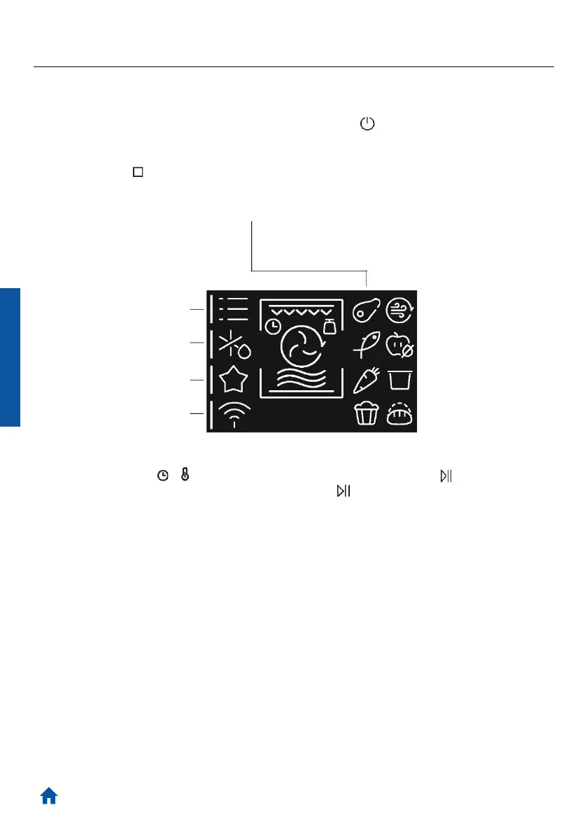 Chcete-li zapnout nebo vypnout troubu, dlouze stiskněte ikonu .