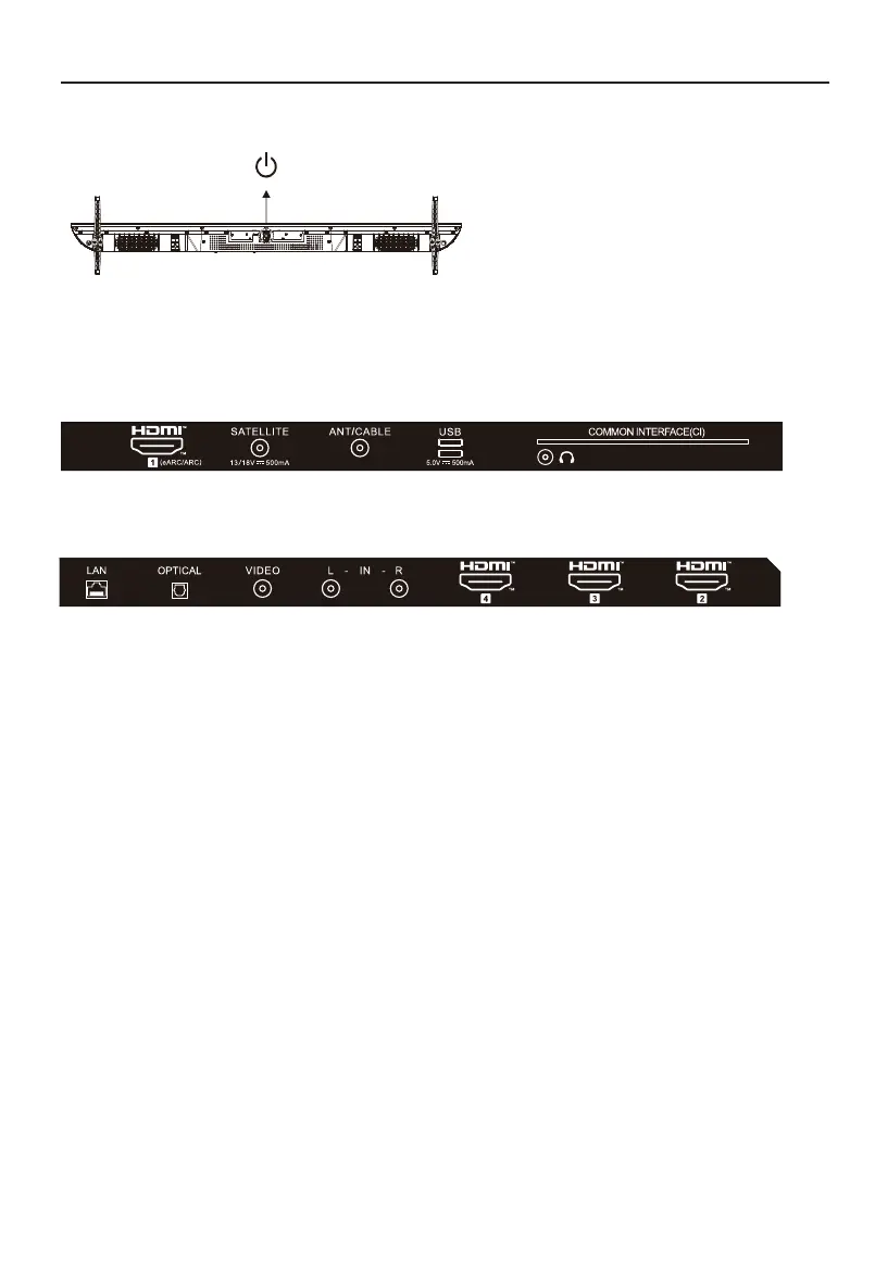 HDMI1(eARC/ARC), SATELLITE, ANT IN(ANTENNA/CABLE), USB, HEADPHONE, COMMON INTERFACE(CI).