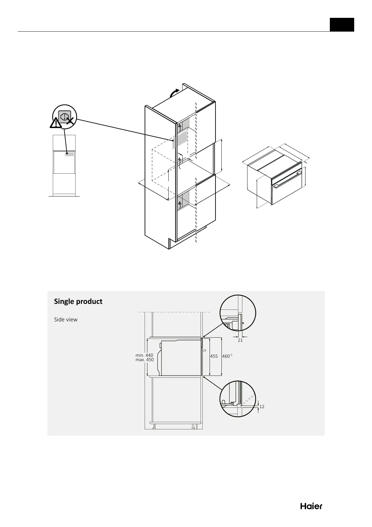 Installaon compact oven in column