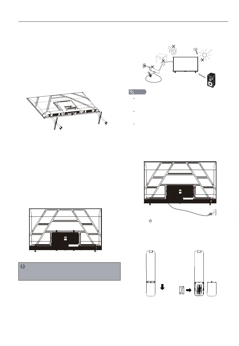 2. Fije el soporte a la parte inferior del televisor con los 4