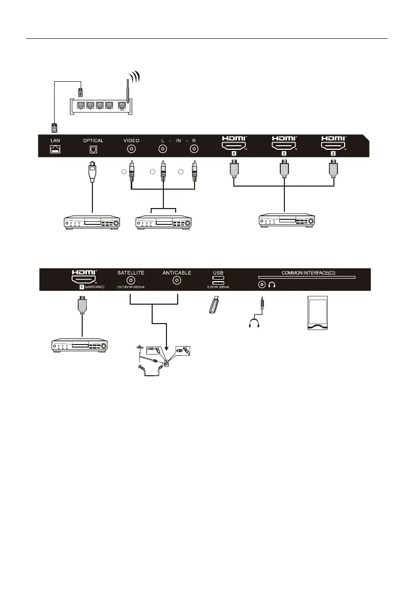 Pode utilizar os terminais de entrada na parte traseira do TV, como se segue.