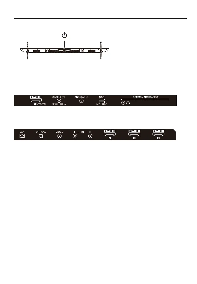 HDMI1(eARC/ARC), SATELLITE, ENTRÉE ANT (ANTENNE/CÂBLE), USB, ÉCOUTEURS, INTERFACE