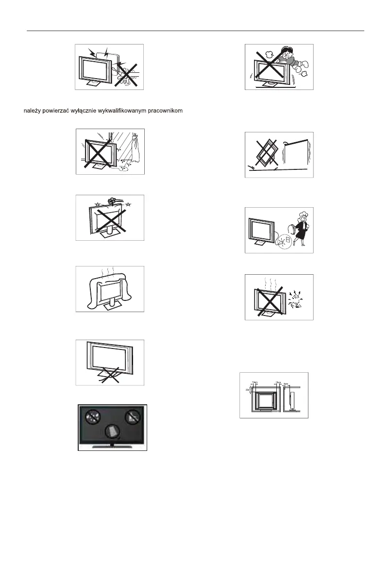 otworów telewizora. Nigdy nie rozlewaj na odbiornik telewizyjny
