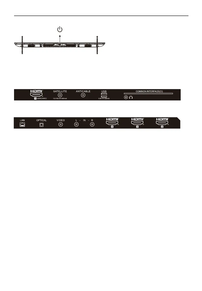 HDMI1(eARC/ARC), LNB IN (SATELLITE), ANT IN (ANTENNA/CABLE), USB, SŁUCHAWKI, CI.