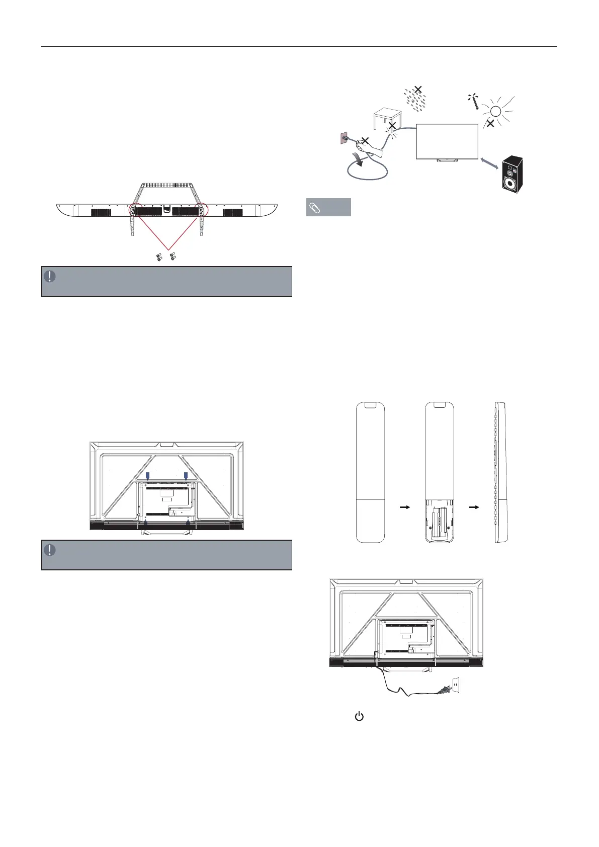 2. Fix the stand to the bottom of the TV with the 4 screws.