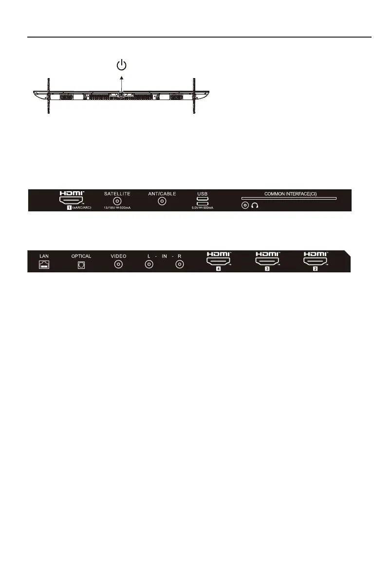 HDMI1(eARC/ARC), SATELLITE, ANT IN (ANTENA/CABO), USB, HEADPHONE, COMMON INTERFACE(CI).