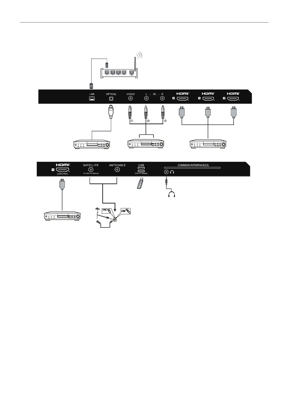 Pode utilizar os terminais de entrada na parte de trás da TV da seguinte forma.