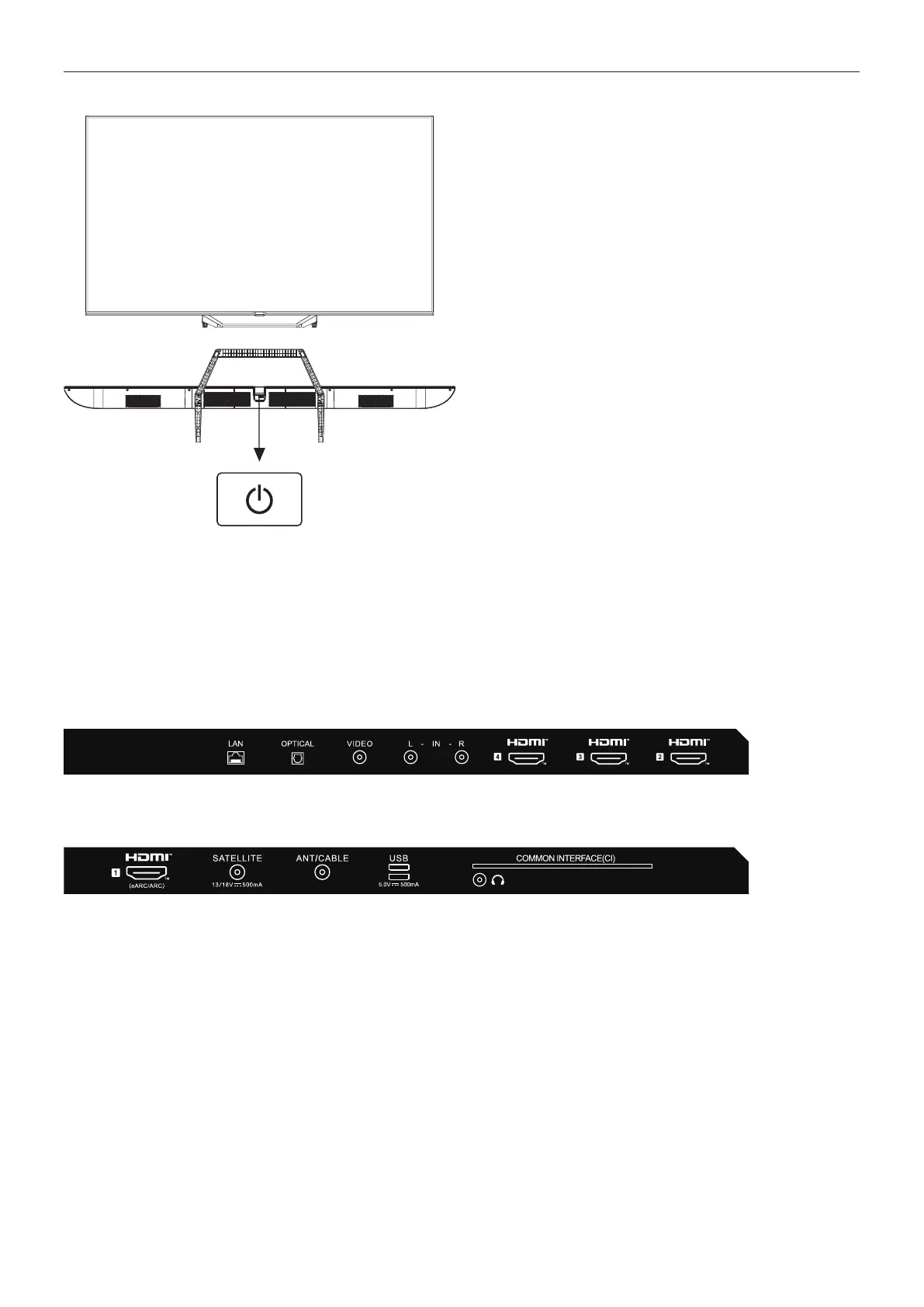HDMI 1 (eARC/ARC), SATELLITE, ANTENNA/CAVO, USB,