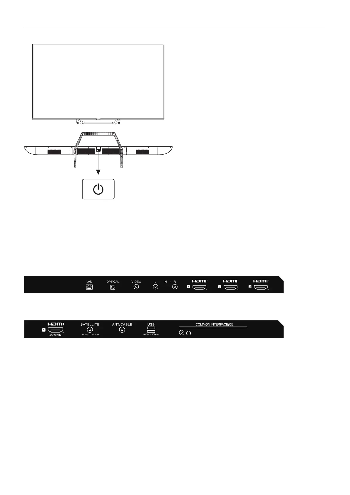 (eARC/ARC), SATELLITE, ANT/CABLE, USB, EARPHONE,