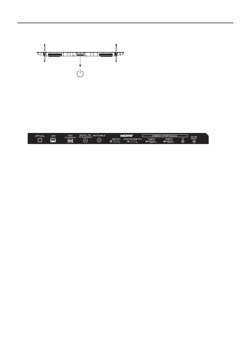 OPTICAL, LAN, USB, LNB IN (SATELLITE), ANT IN (ANTENNE/KABEL), HDMI4, HDMI3 (eARC/ARC),
