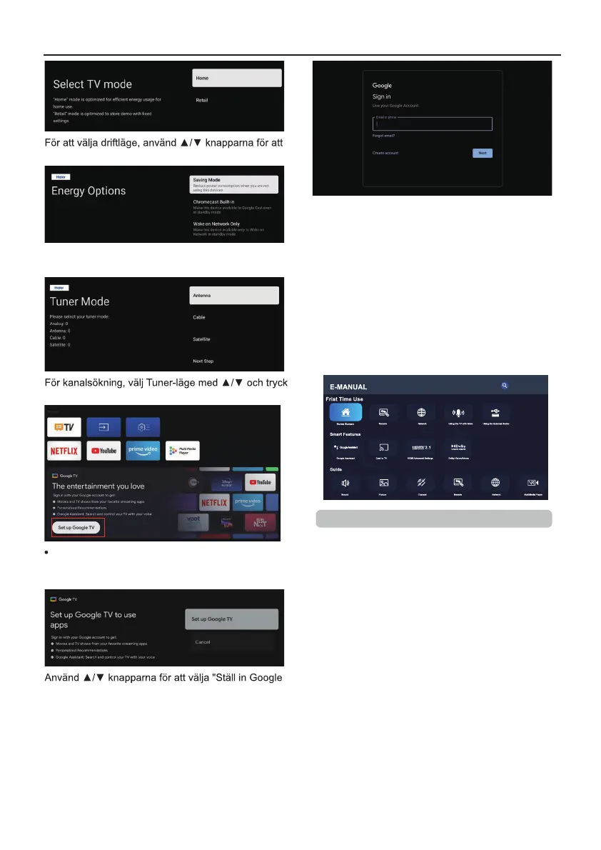 att välja och ange "E-Manual" (E-Bruksanvisning) i
