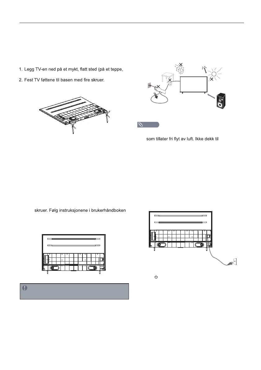 monterer TV-en på veggen, må du fjerne TV-foten.