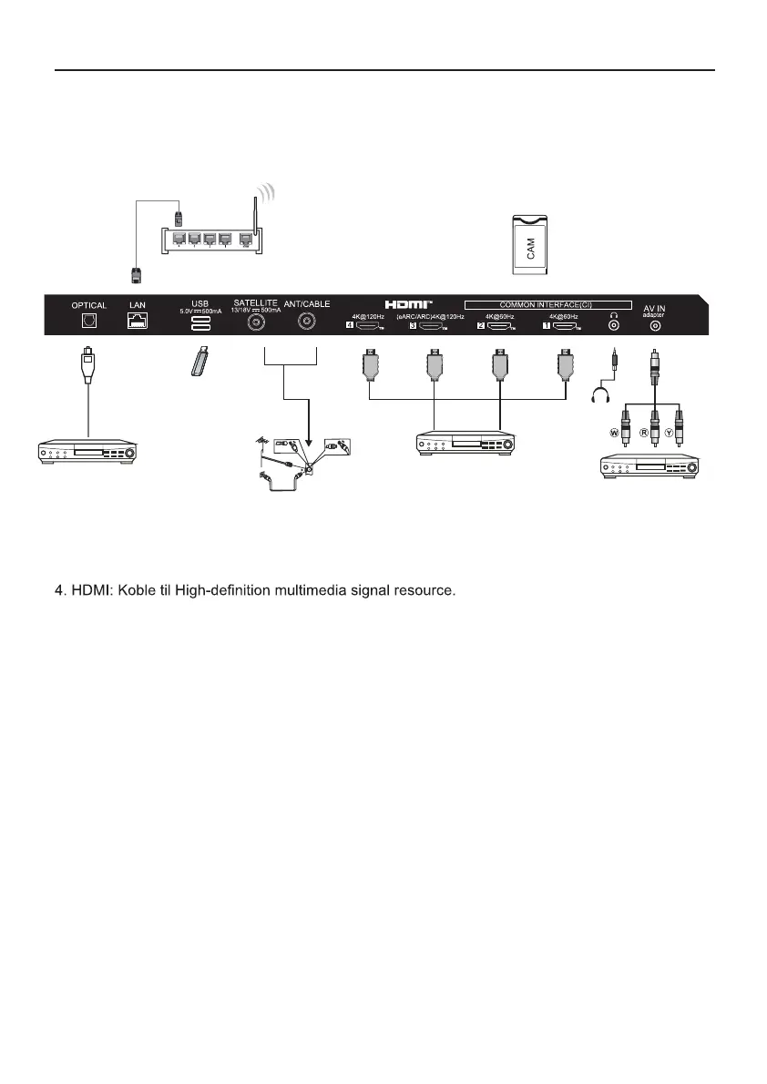 Du kan bruke tilkoblingsterminalene på TV-apparatets bakside som følger.