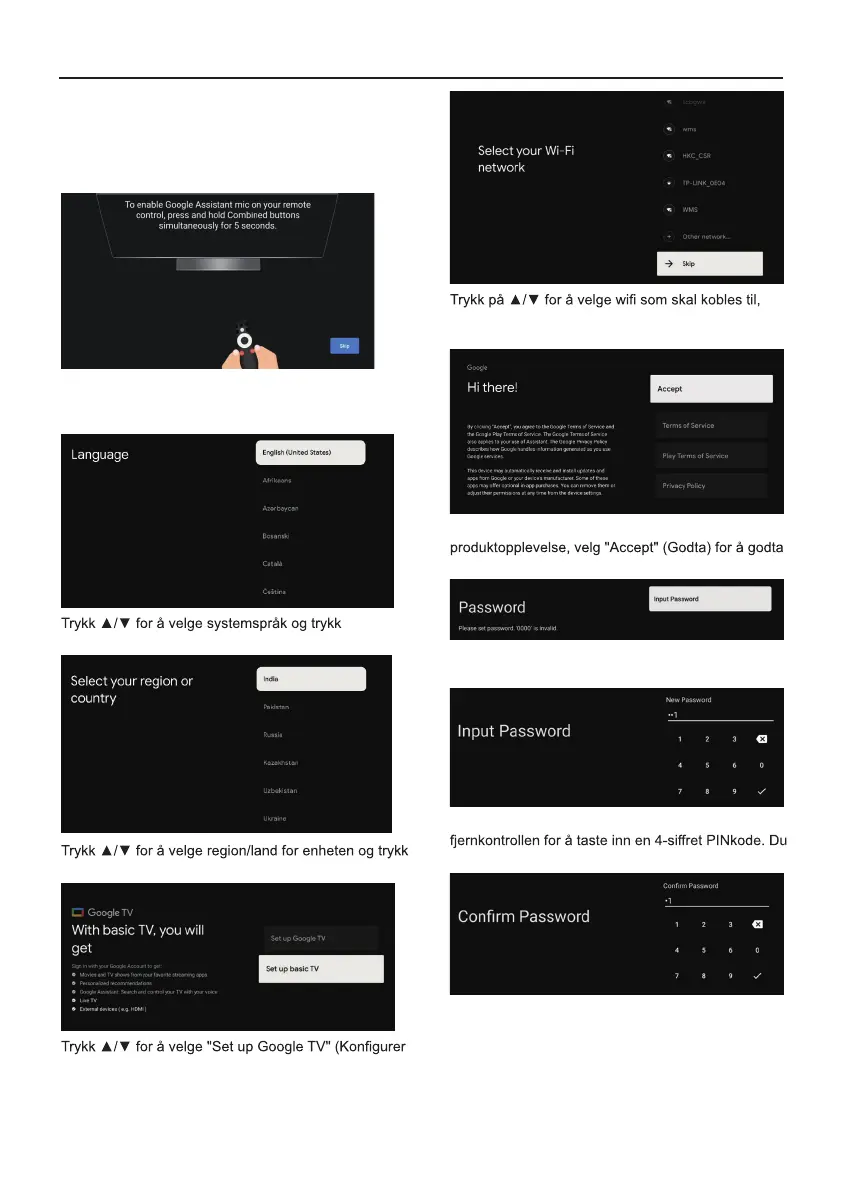Bekreft passord. Bruk fjernkontrollen til å taste inn