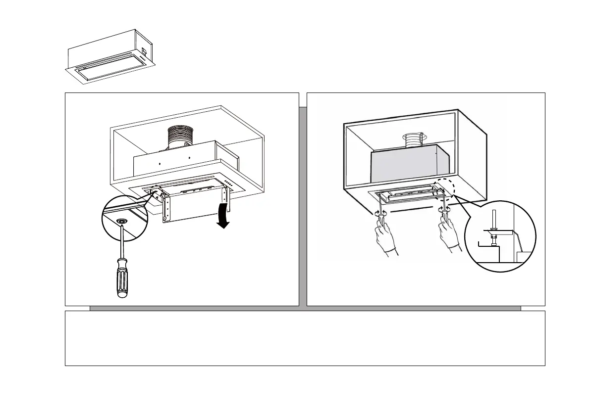 Open the grease filter and remove the two fixing screws with a screwdriver. Lift up until it is fully installed