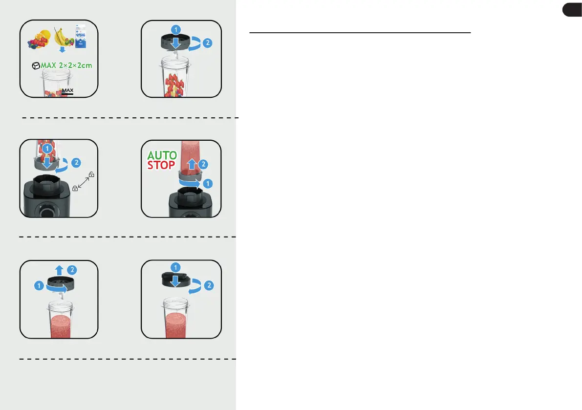 2. Tilsett væske og ingredienser i blenderen. Ikke tilsett ingredienser over