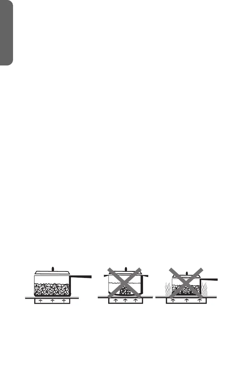 Do not allow pans to boil dry. This can damage the pan, element and/or cooktop.