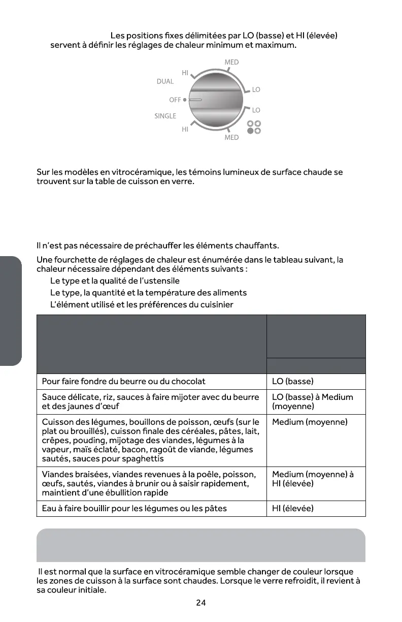 mettra à clignoter lorsque la surface en verre sera chaude, et restera allumé jusqu'à ce