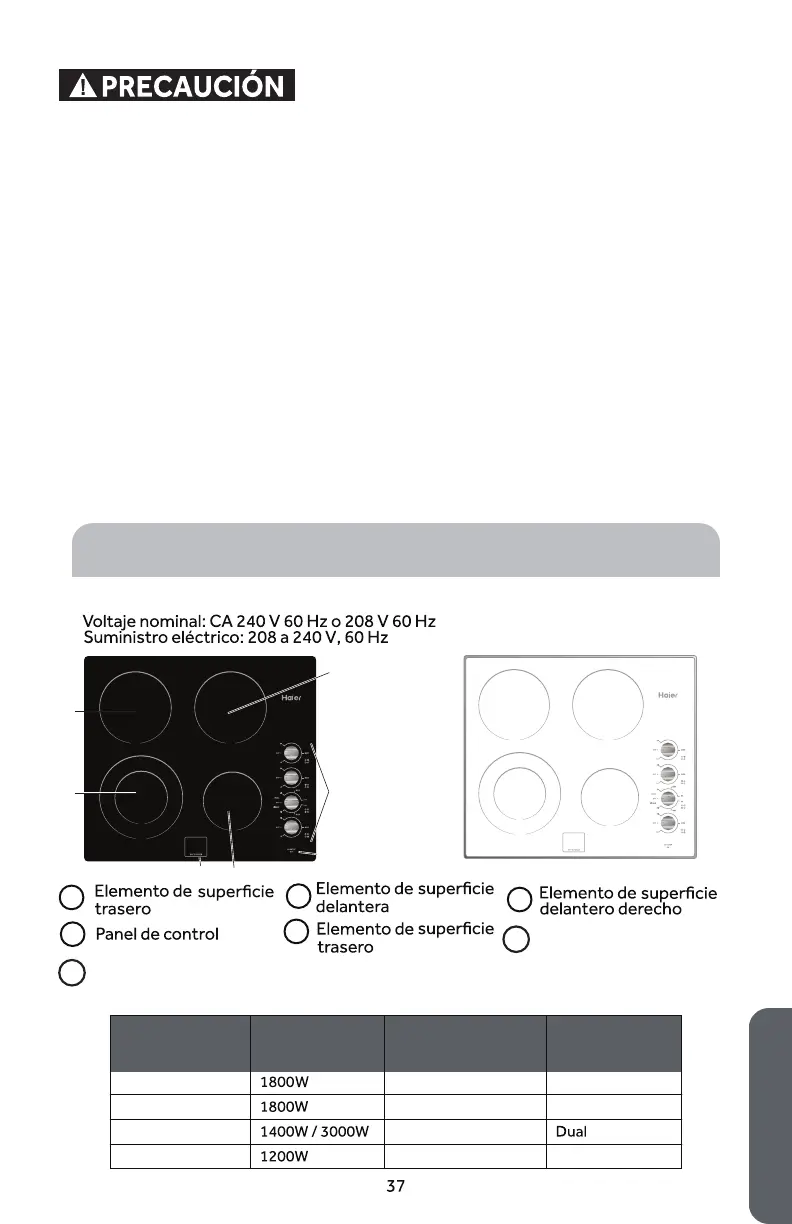 • Las superficies potencialmente calientes incluyen la superficie de cocción y las áreas