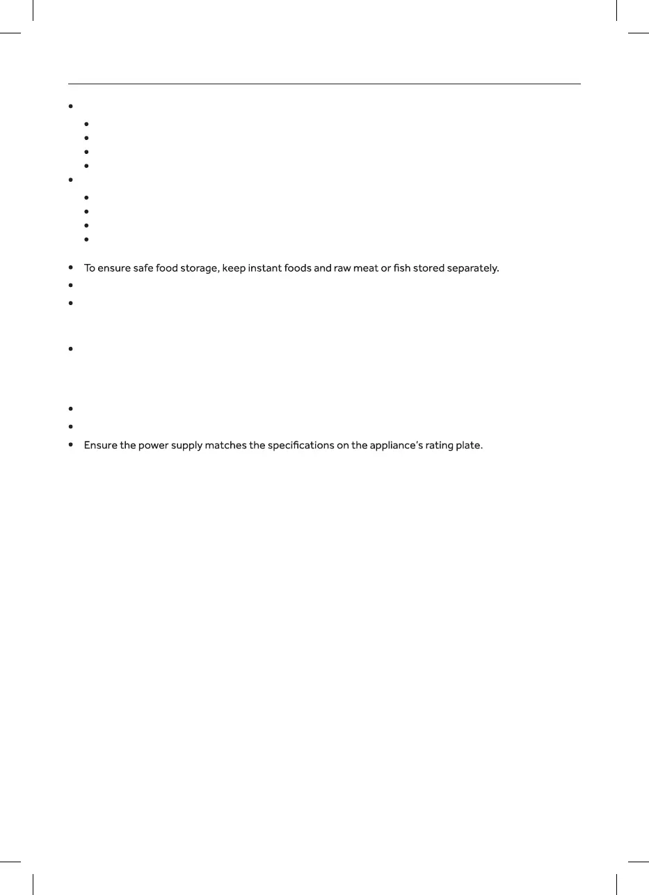 This appliance is intended strictly for household use, for storing food only.