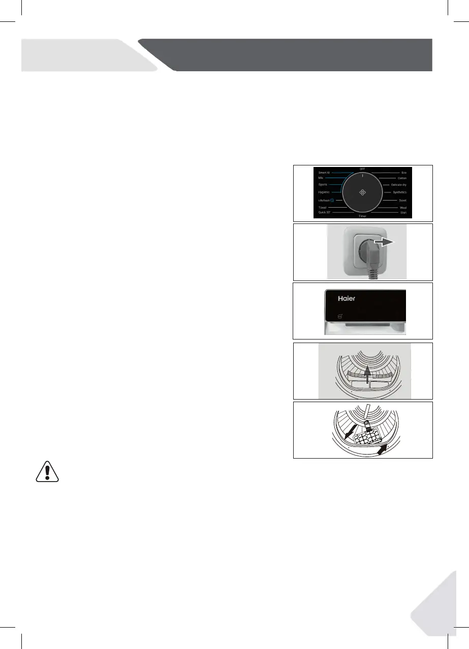 Be careful when taking out or adding clothes! The Interior of the drum or the clothes