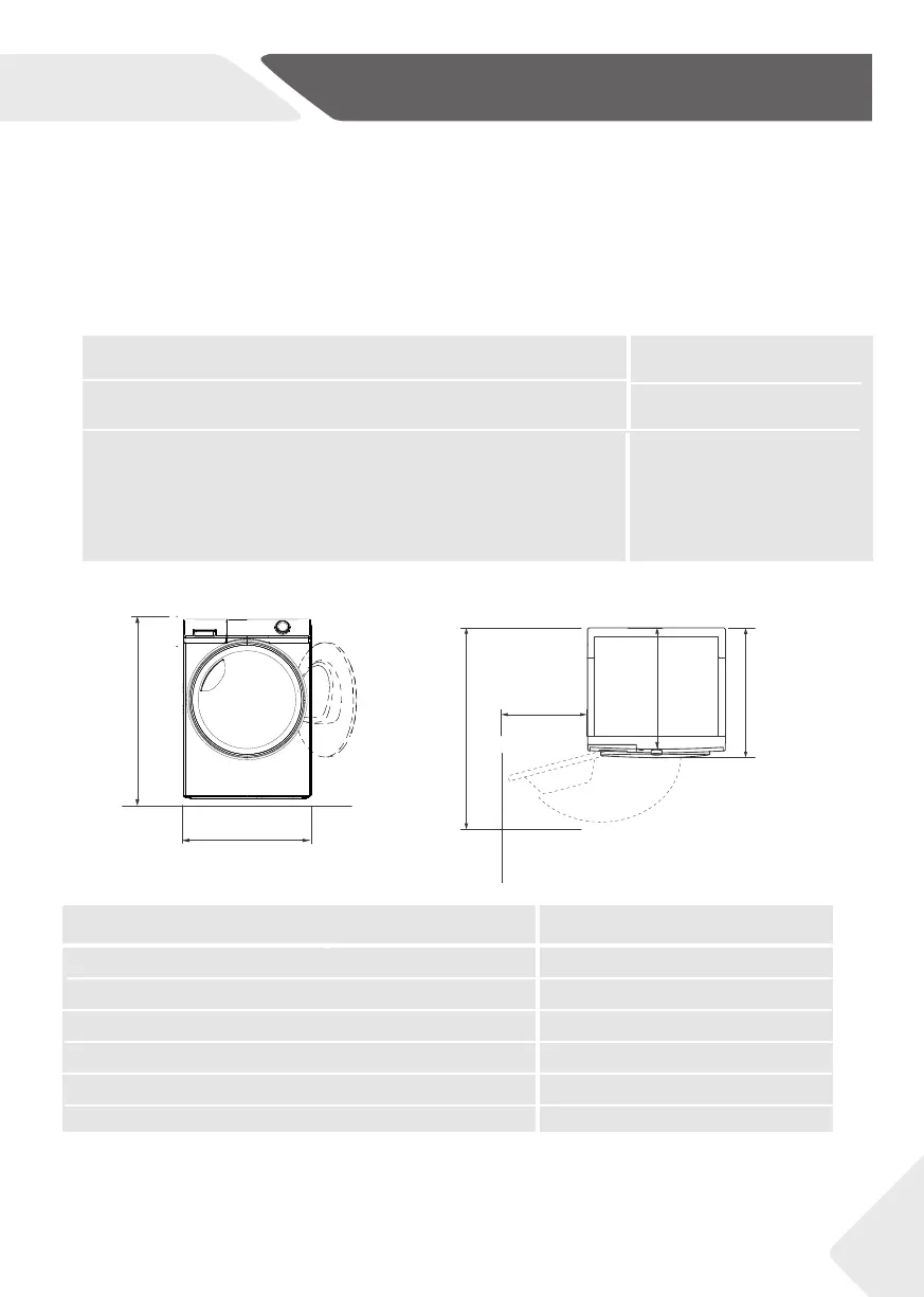 the base of the machine. The space where you install your dryer needs to be at least