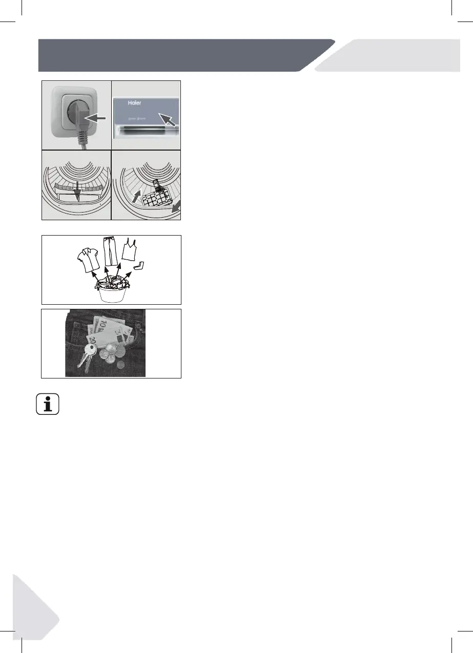 etc.). Only dry clothes that has been spun.