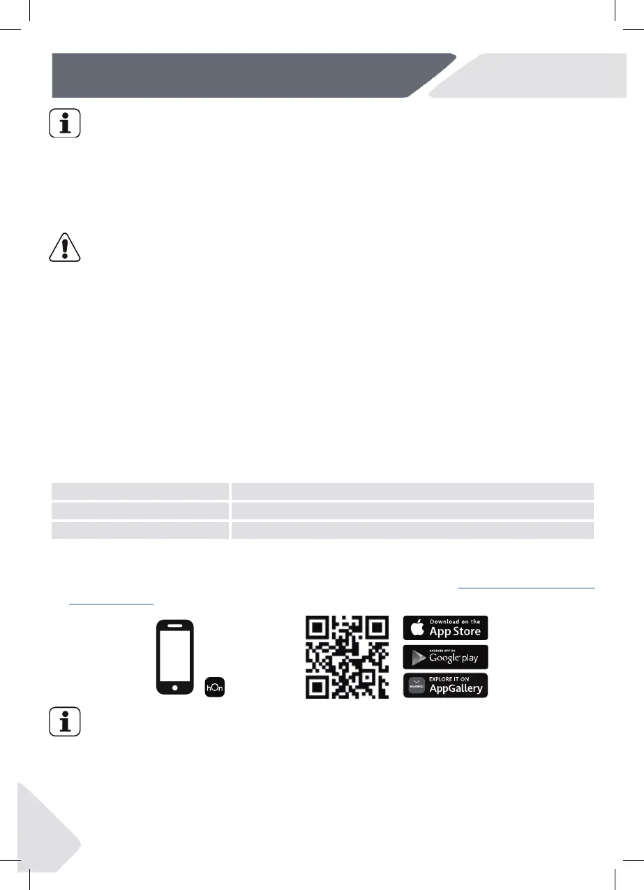 This appliance is equipped with Wi-Fi technology for remote control via the hOn app.