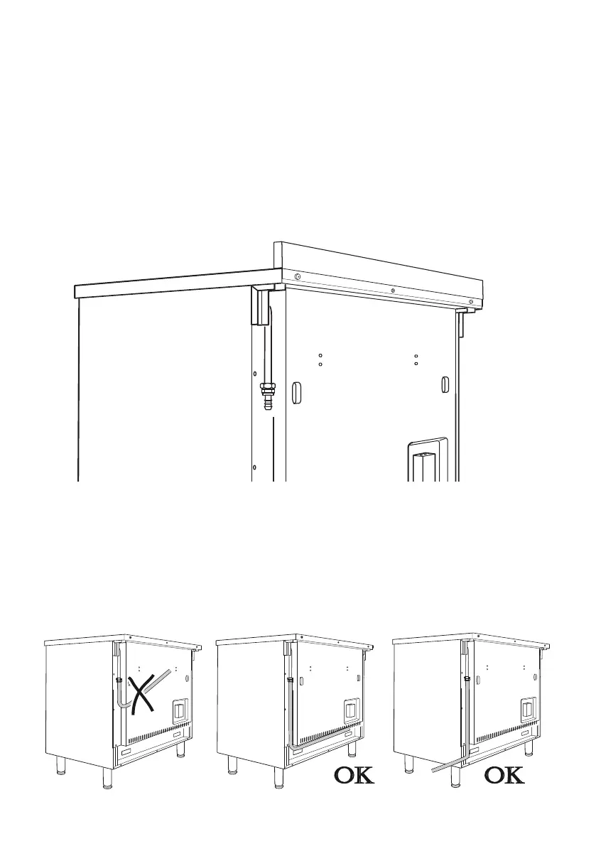 • The pipe does not cross the rear panel of the cooker. In case of crossing the back